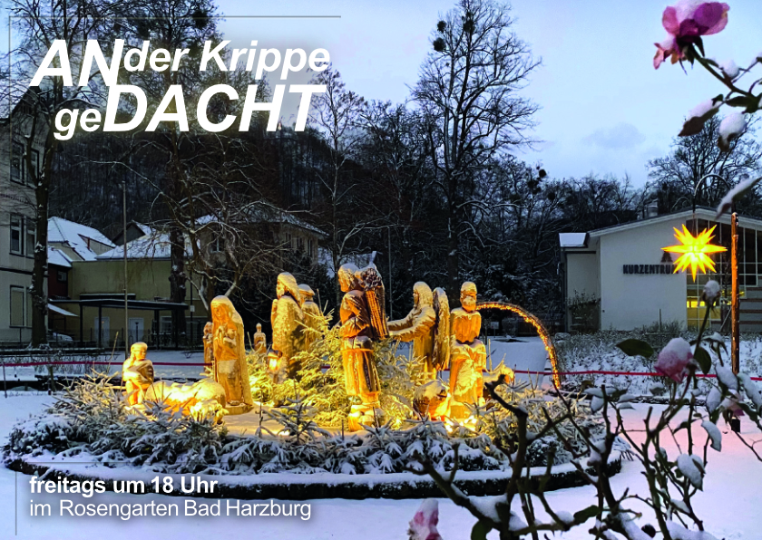 Hinter der Weihnachtskrippe im Bad Harzburger Rosengarten stehen eine Idee Marianne Schirrmeisters, die Bad Harzburg-Stiftung, ein Motorsägenkünstler und eine 2000 Jahre alte Botschaft…