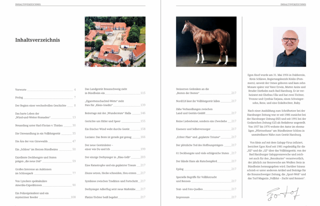 Das opulent gestaltete Werk „Gestüt Harzburg – Das Erbe der Braunschweiger Herzöge“ des Bad Harzburger Journalisten und Pferdeexperten Egon Knof trägt nicht „nur“ dazu bei, die 600-jährige Geschichte des ältesten Deutschen Vollblutgestüts zu bewahren. Das prächtige Buch macht sich auch ebenso prächtig unter dem Weihnachtsbaum auf dem Gabentisch…