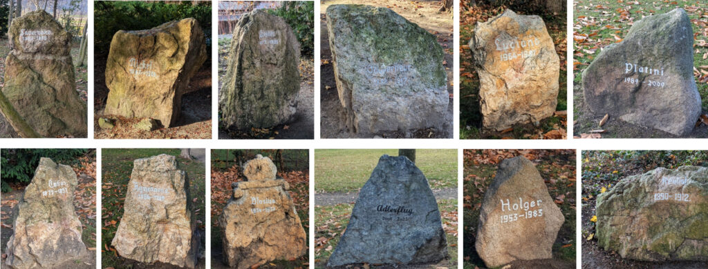 Mit Beifall bedacht wurde das Engagement der Bad Harzburg-Stiftung schon beim ersten Bündheimer Dorf-Rundgang, als Egon Knof und Dirk Junicke im Schlosspark die endlich wieder in den Fokus gerückten und sanierten Gedenksteine für die großen Pferde der Gestütsgeschichte präsentierten. Die Nachbeschriftung der Steine hatte die Firma Mühlbrecht-Grabmale unentgeltlich übernommen.