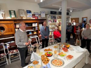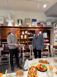 Nun wissen natürlich auch die Spitzen der Bad Harzburg-Stiftung, was sich für gute Gäste gehört und kamen nicht mit leeren Händen. Hans-Jürgen Fleger und Hartmut Weber verteilten für den Vorstand Gutschein-Geschenke an die Mitglieder des Ehrenamtlichen-Teams der BÜCHER-HEIMAT. Es war dies mehr als eine Dankeschön-Geste, denn Würdigung und Stärkung des Ehrenamts ist nun schon im dritten Jahr ein Schwerpunkt der Stiftungsarbeit.